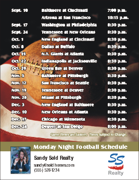 MONDAY NIGHT FOOTBALL SCHEDULE mmn2081