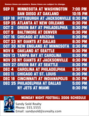 MONDAY NIGHT FOOTBALL SCHEDULE mmn2082